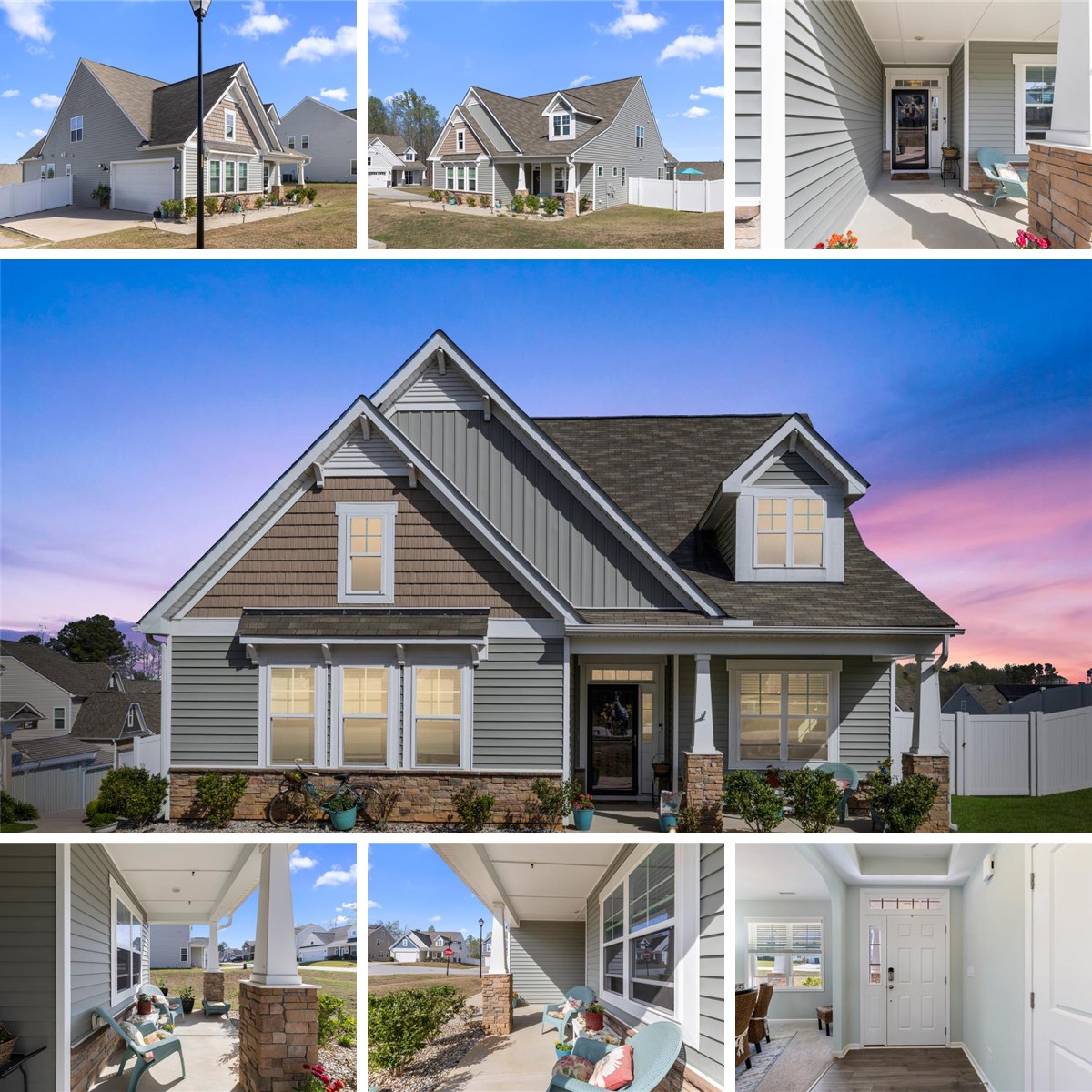 Welcome to this crafted 3-bedroom, 2.5-bath home, perfectly situated on a spacious 0.27-acre corner lot. Built in 2021, this like-new residence offers an open floor plan and tons of natural light! The Sunroom opens up to a cozy screen porch perfect forrelaxing and enjoying an evening without the bugs. The screen porch opens to the patio where currently the sellers sit and enjoythe fully fenced in backyard and all the flower gardens. The gourmet kitchen is a true centerpiece, featuring granite countertops,stainless steel appliances (including a double oven), and abundant cabinetry for storage and functionality. The adjoining diningarea flows seamlessly into the living room, where a gas fireplace adds warmth and charm.The main-level primary suite provides aprivate retreat, complete with a generous walk-in closet and a well-appointed ensuite bath. Upstairs, you'll find two additionalbedrooms, a full bathroom, and a versatile bonus room--perfect for a home office, media space, or playroom.With its prime locationoffering easy highway access, commuting is a breeze, while nearby shopping, dining, and entertainment provide addedconvenience. ~2026 New LVP in Family room ~2025 Front exterior Pella door with Rolscreen and exterior raised garden bed 2024Vinyl Fencing and slab patio, new ceiling fans in Sun Room, LR and Primary Bedroom ~ Interior Paint in Kitchen, DR, LR, PowderRoom, Primary Bedroom. Located in a welcoming community with amenities including a pool and fitness center, this home trulyhas it all.*Per the property disclosure property may be impacted by noise from 140 Overlook Project
